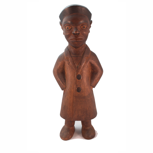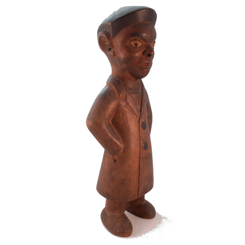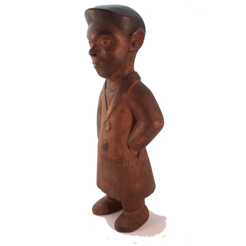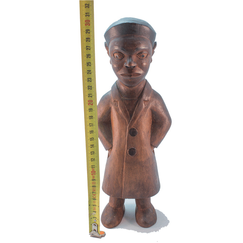 Discover our unique handcrafted wooden sculpture, expertly carved and depicting a standing figure with remarkable attention to detail. Measuring 30 x 13 cm, this distinctive piece reflects cultural artistry and craftsmanship, offering an authentic and engaging focal point for art collectors and decor enthusiasts alike. Enhance your space with this striking work of traditional wood art from AntikArt.