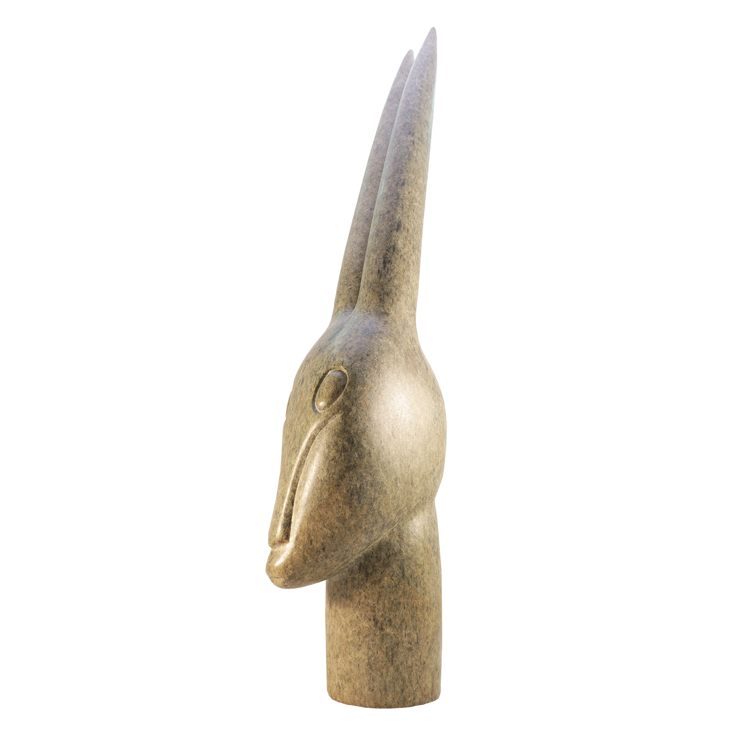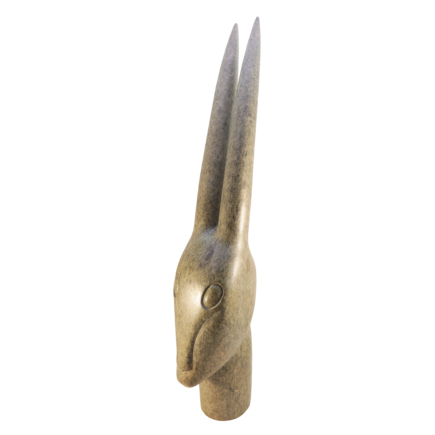 An eye-catching piece of antelope sculpture by sculptor Edwrd, proudly showing its sharp horns which make it unique and definitely a stand-out. A pure center piece for any lounge.